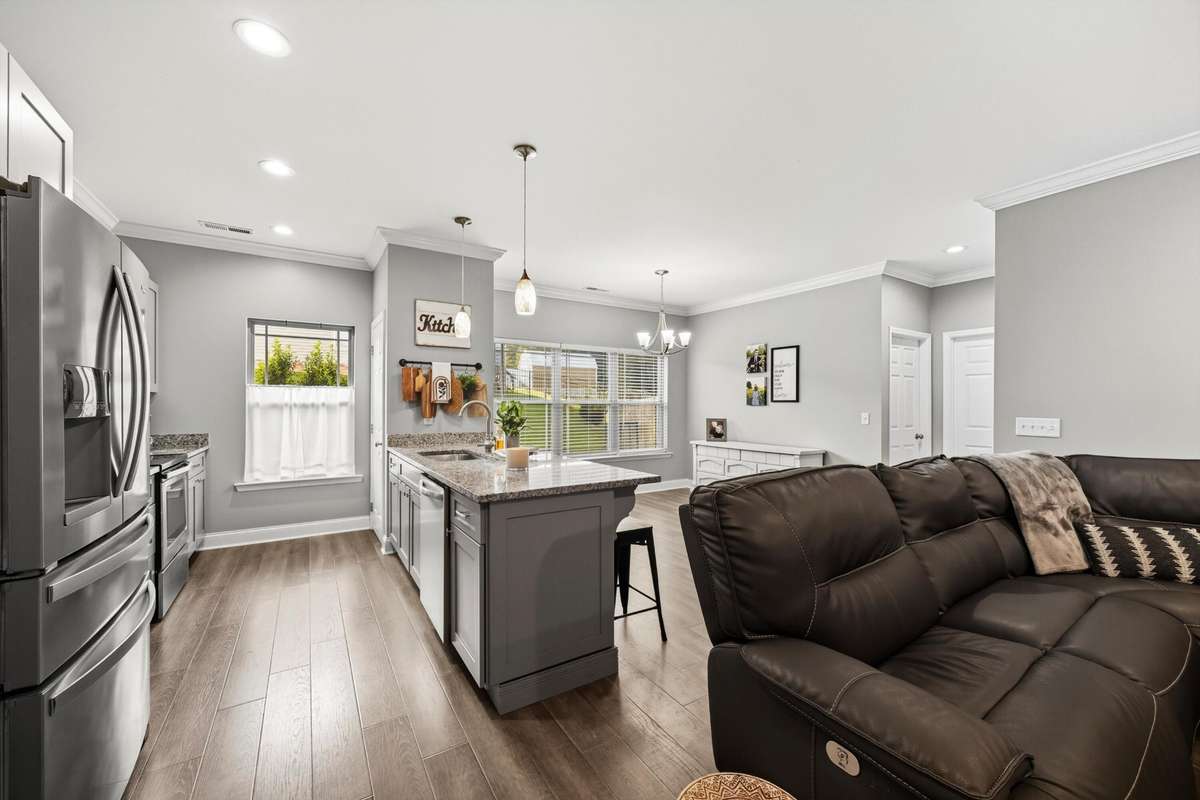 Welcome to 60 Red Oak Ridge Drive - a beautifully maintained, zero- entry home in Chickamauga! This 3- bedroom, 2- bathroom home features an open floor plan with 9- foot ceilings and a desirable split- bedroom layout for added privacy. You' ll love the low- maintenance luxury vinyl plank and tile flooring throughout - no carpet in sight! The spacious kitchen features granite countertops, stainless steel appliances, a breakfast bar, and a pantry, and it seamlessly opens to the dining and living areas - perfect for entertaining or everyday living. The private primary suite includes a large walk- in closet, double vanities, and a custom tile shower. Step outside to a covered back porch that overlooks a fenced and private backyard - ideal for relaxing or hosting guests. Convenient, stylish, and move- in ready, this home checks all the boxes. Schedule your showing today!