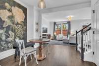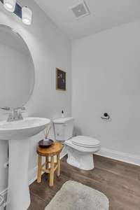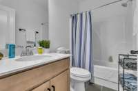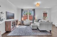 Retreat to the large primary suite with a spacious walk- in closet and bonus bathroom storage. East- west exposure floods the home with natural light throughout the day.