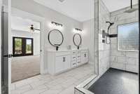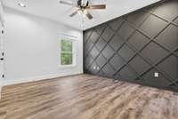 The primary suite is a true retreat, featuring ample space for a king- sized bed, a luxurious en- suite bath with a walk- in shower, dual vanities, and a large walk- in closet. Three additional generously sized bedrooms provide plenty of room for family or guests, and a dedicated office or flex space is perfect for working from home.
