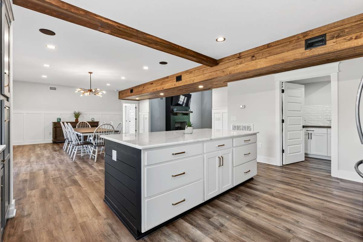 Welcome to this breathtaking 4- bedroom, 3. 5- bathroom barndominium, spanning over 3800 square feet of beautifully crafted living space. Set on 5 expansive acres, this property offers the best of both worlds—modern comforts with a rustic, country charm. Step inside to a vast, open- concept floor plan with soaring ceilings. The spacious living room, complete with a cozy fireplace, flows seamlessly into a chef’s dream kitchen. Boasting stainless steel appliances and an oversized island, it’s the ideal space for both everyday living and entertaining.