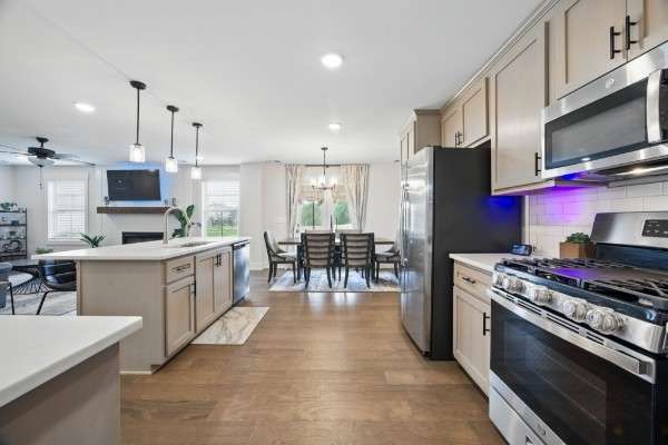 Better than new! Fence, blinds, refrigerator included! Welcome to 397 Frontier Drive. Step into the large foyer and immediately feel welcomed by the open, bright, and inviting layout. The chef' s kitchen features a huge quartz island perfect for meal preparation and casual dining. The custom cabinets offer ample storage. The stainless- steel appliances are sleek and modern. The natural GAS stove is included for precise cooking. The dining area will accommodate a large table and chairs, and the large great room features a GAS fireplace, creating a warm and welcome space for any gathering. Off the kitchen you' ll find a cozy OFFICE- a perfect flex space for all your needs. Additionally, a half bathroom on this level provides convenience for guests. Upstairs, the spacious primary suite has a separate soaking tub, tile shower, double vanity sinks, and large closet. Two secondary bedrooms, a full bathroom and OVERSIZED BONUS ROOM completes the 2nd level. Step onto the covered deck & enjoy the completely fenced backyard oasis with a picturesque view. Watch the sunrise with your favorite morning beverage on the front porch and relax and unwind on the back deck to watch the sunset.