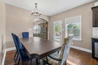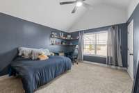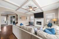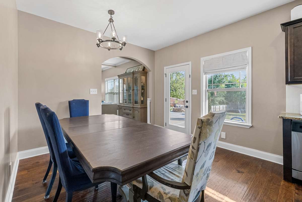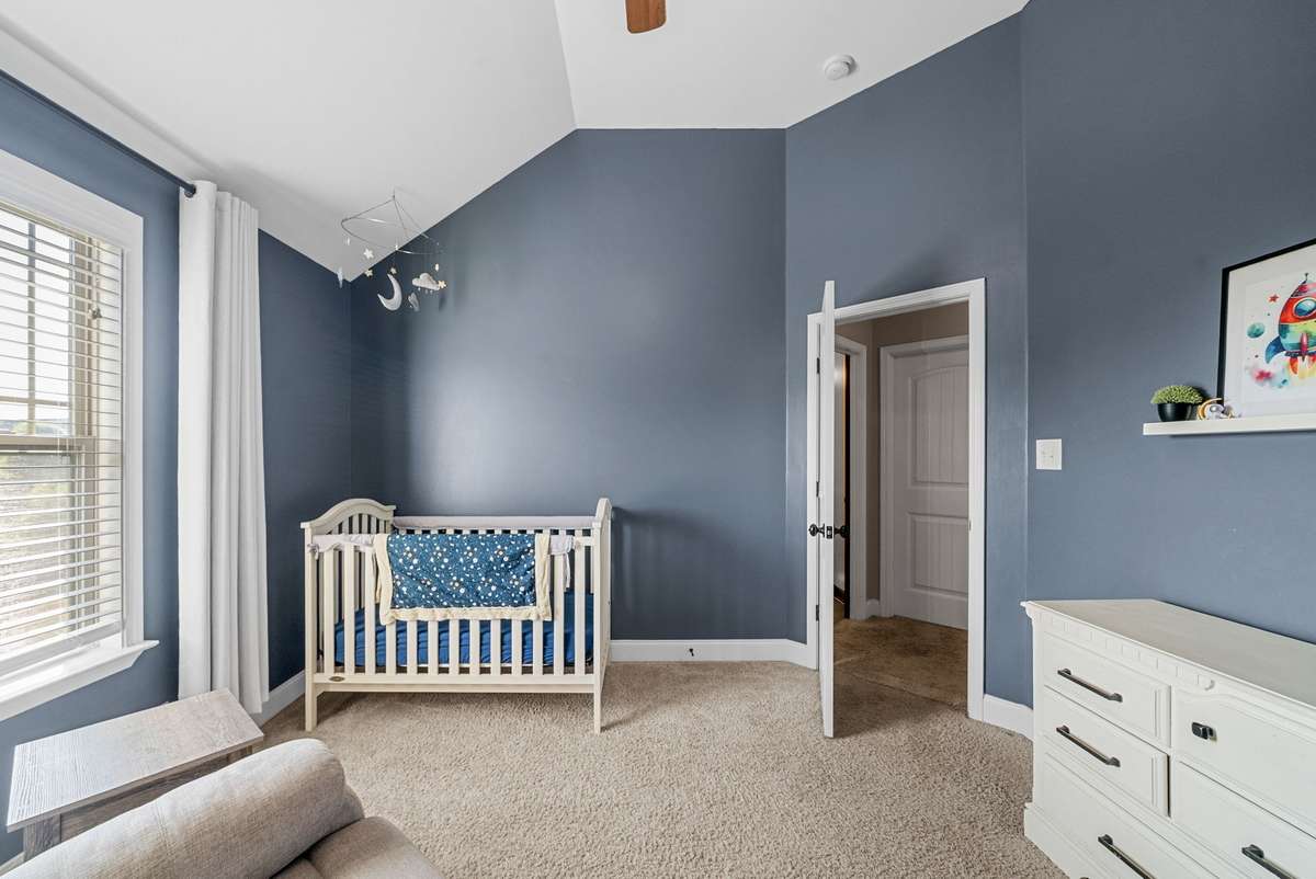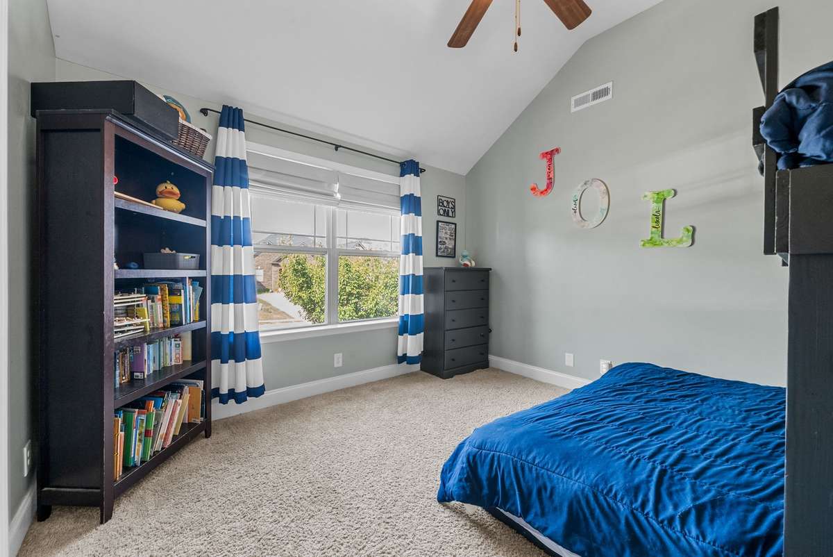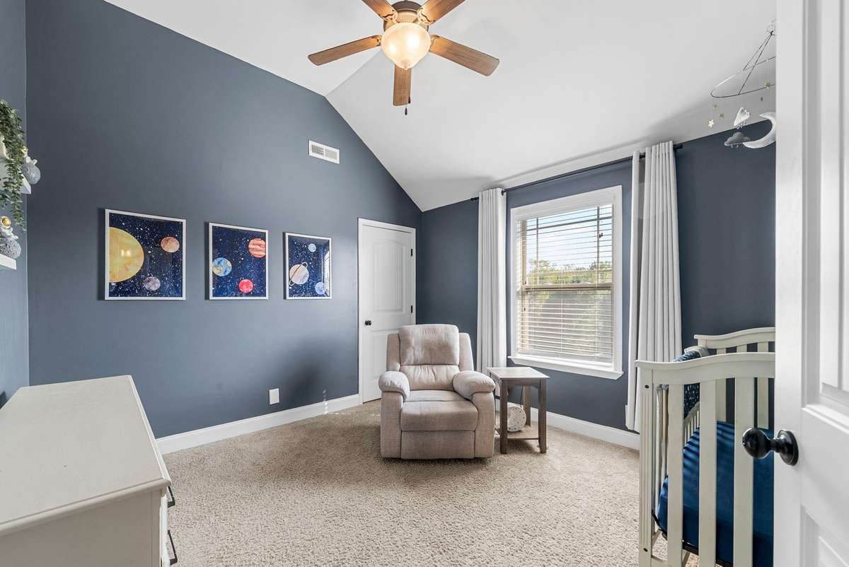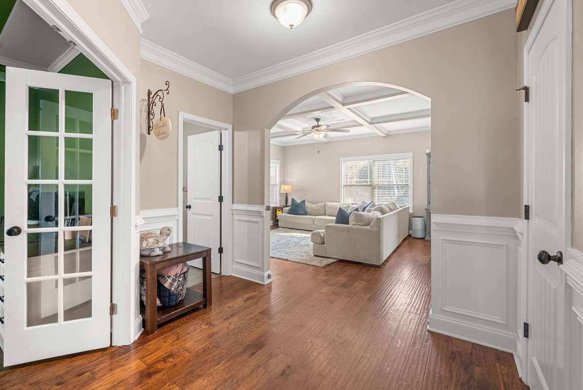 Beautiful 4- bedroom, 2. 5- bath home with a welcoming entryway and flex room that can be used as a private office or formal dining room on the main level. The living room features elegant coffered ceilings, while the bright eat- in kitchen offers plenty of space for gatherings. All bedrooms are generously sized, with laundry conveniently located upstairs. Step outside to a covered patio with an extended patio area, overlooking a large fenced backyard ideal for entertaining, pets, or play. Minutes from shopping, dining, and schools, and with no HOA, this home combines comfort, style, and freedom