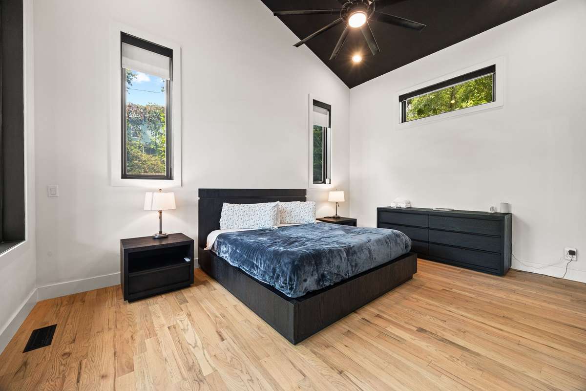 Located at the end of Electric Avenue and just 25 yards from Shelby Bottoms Park, this architecturally striking home is more than a residence—it’s your front- row seat to East Nashville’s vibrant culture. Inside, the home blends soaring scale with warm livability. Twenty- foot ceilings and huge black- framed windows flood the open- concept living area with natural light. A double- height great room flows into a designer kitchen and dining space, creating a breezy, communal feel. Automatic shades in the downstairs add to the comfort of the home. The primary suite is conveniently located on the main level and enjoys direct access to a covered deck with a fireplace—perfect for al- fresco dinners or quiet mornings overlooking the patio and firepit or fenced backyard. On the upper floors, every bedroom has its own ensuite bath, offering privacy for family and guests. The top- floor bonus room opens to a walk- out balcony, ideal for sunset cocktails or taking in treetop views. Additional highlights include a dedicated office nook, generous storage, premium appliances and a two- car garage. Comfort and connection come naturally here. Whether you’re enjoying shopping, going for food and drinks at Five Points, playing a round at Shelby’s historic golf course or catching a summer concert at Cornelia Fort Airpark, this home puts you at the center of it all. With its dramatic architecture, thoughtful floor plan and walkable location, 716 Village Ct offers a lifestyle that celebrates both modern luxury and the timeless spirit of East Nashville.