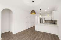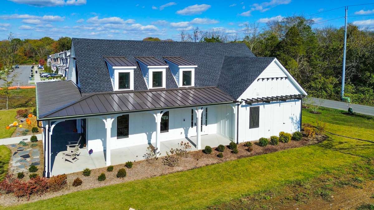 This is the Charleston floor plan with the primary suite on the main level. Only 1 year old, refrigerator and washer/ dryer remain. Upgraded light fixtures, laminate floors on the main level. This is also an end unit a with patio in the back overlooking horse farm. Club House, Playground and walking trail. Convenient to shopping and restaurants.