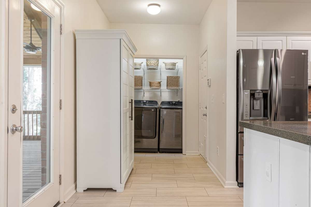 Step outside to your own backyard oasis. A screened- in deck offers a private space to relax or dine outdoors, complete with double ceiling fans for year- round comfort. From there, walk out to a thoughtfully designed backyard that centers around a custom firepit—perfect for cozy evenings under the stars.