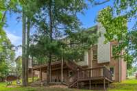 Step outside to your own backyard oasis. A screened- in deck offers a private space to relax or dine outdoors, complete with double ceiling fans for year- round comfort. From there, walk out to a thoughtfully designed backyard that centers around a custom firepit—perfect for cozy evenings under the stars.