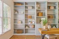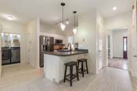 The flexible layout includes four spacious bedrooms, with the fourth easily serving as a bonus room, home office, or guest retreat. Ample storage throughout ensures everything has its place. A dedicated in- home theater is a standout feature—complete with theater seating, projector, surround sound speaker system, built- in audio, and a beverage cooler for the ultimate movie night experience.
