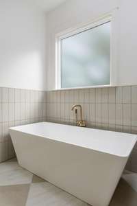 The master suite is a private retreat, complete with two spacious walk- in closets, a serene spa- like bathroom with soaking tub & carefully selected tile. The master also has direct access to the back screened in porch. The additional bedrooms are well- sized, with unique tile and lighting details adding personality and warmth to every corner.
