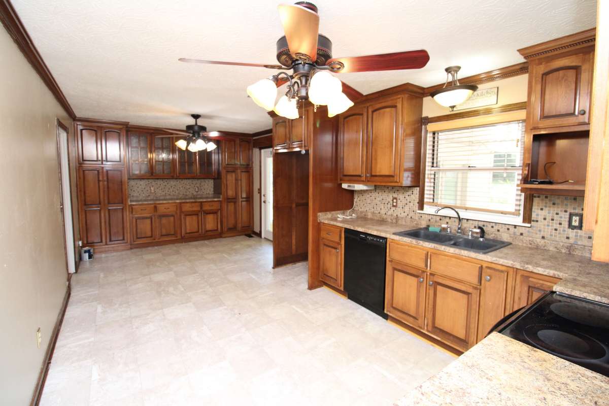 Welcome Home! This beautiful 3- bedroom, 2- full bath brick house on a large level lot features approx. 2, 080 sq. ft. of heated and cooled living space and has been well maintained with several upgrades including an eat- in kitchen that has been renovated with custom cabinets and built- ins that provide a tremendous amount of cabinet space, newer counter tops and tile backsplash, living room, primary bedroom with new step- in shower, 2- additional bedrooms, renovated hall bathroom with tub/ shower combination, formal dining room, large laundry room, den w/ natural gas fireplace and a separate storage room/ hobby room! Other improvements include replacement windows, hardwood floors, C/ H/ A, covered front porch, carport/ patio area, Florida room, extra wide blacktop drive that provides ample parking for several vehicles, dimensional roof and 12×24 utility building! Do you enjoy working with flowers and landscaping? If so, you will love the many flower beds and landscaping wrapping around this home! This home is on a large level lot with a spacious front and back yard! If you have been looking for a beautiful, well- maintained home in town you must check out what this home has to offer!