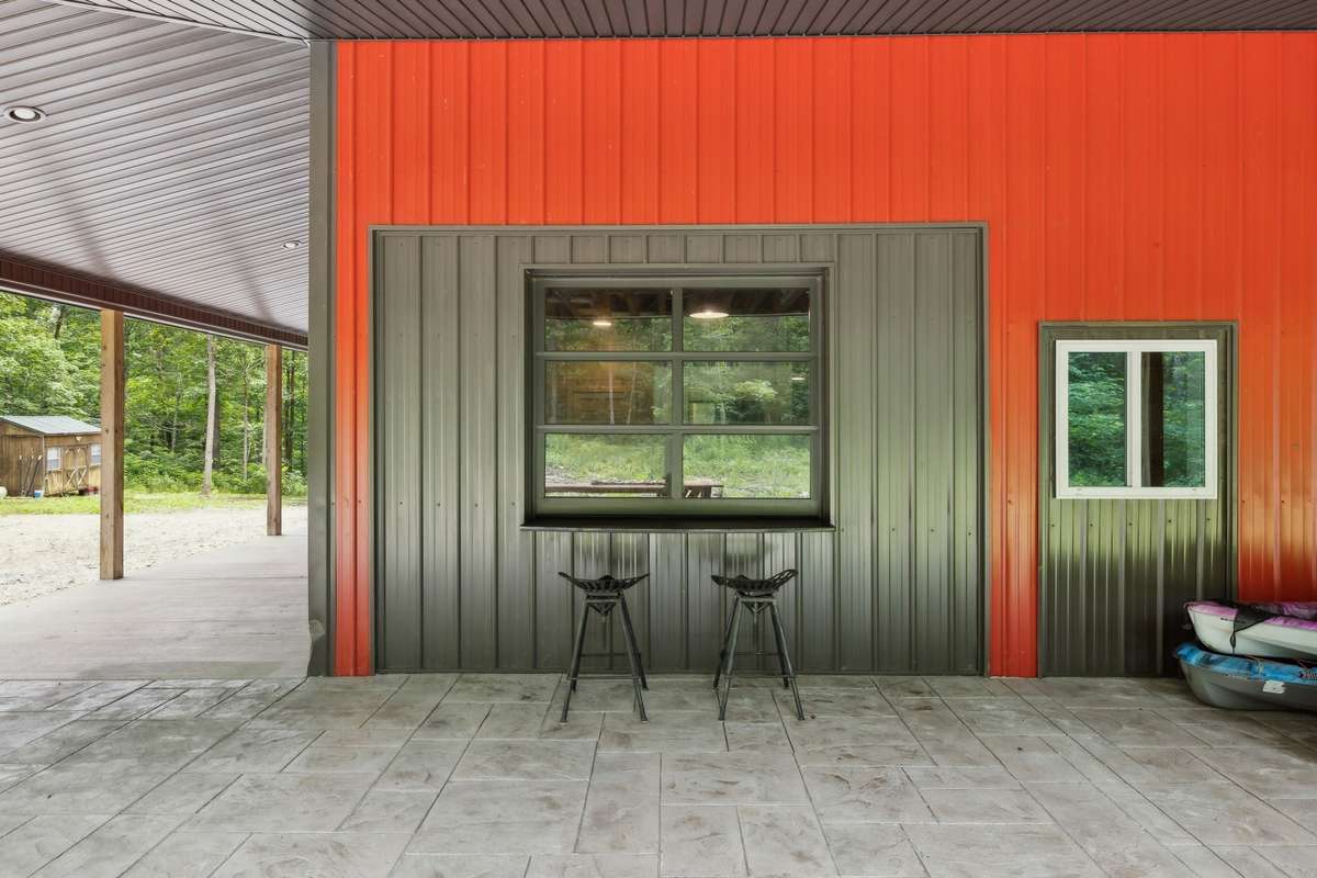 Never have barndominiums and airbnbs been more popular and this is your chance to get all 3 in 1! Check out this 3000+ sf barndo on 8 acres with a separate tiny home style apartment with full living quarters. Whether you' re looking for a place where 3 generations can live together comfortably, the perfect place for entertaining large groups or a great house hacking/ income producing property this is your opportunity! This huge barndominium has a total of 3 kitchens, 3 living areas, 3 bathrooms, 3 bedrooms, 3 large porches and 2 decks. With full and oversized living quarters downstairs, upstairs and in the apartment this really is the place where parents, older kids and grandparents can live together while still having their separate space. Downstairs is an entertainers dream with stained concrete floors, a kitchen with lots of cabinets, wet bar, large gathering areas and a bar top with a glass garage door that opens to an outdoor bar top so everyone can stay connected inside and out. The main living area has a great open concept and a kitchen with stainless appliances, island, farmhouse sink, leathered granite countertops with lots of cabinetry. The large master bedroom features a hidden gun rack and bathroom with a tiled shower and a hidden room.
