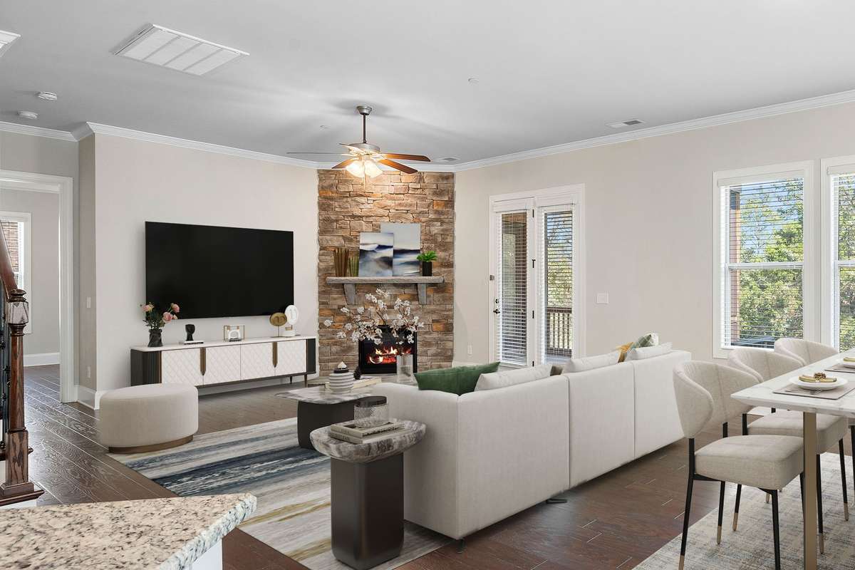 This beautiful home features an open floor plan design, soaring 10- foot ceilings on the main level, and hardwood/ tile throughout the main level. The eat- in kitchen features an oversized island with granite countertop, under- sink reverse osmosis water filtration system, high- end dovetail and soft- close cabinetry and drawers, along with a separate butler' s serving area and an expansive pantry. The main level master bedroom features vaulted 12- foot ceilings, a reading nook, a suite with dual- vanity sinks, large tub, separate shower, and a huge custom walk- in California closet from floor to ceiling.