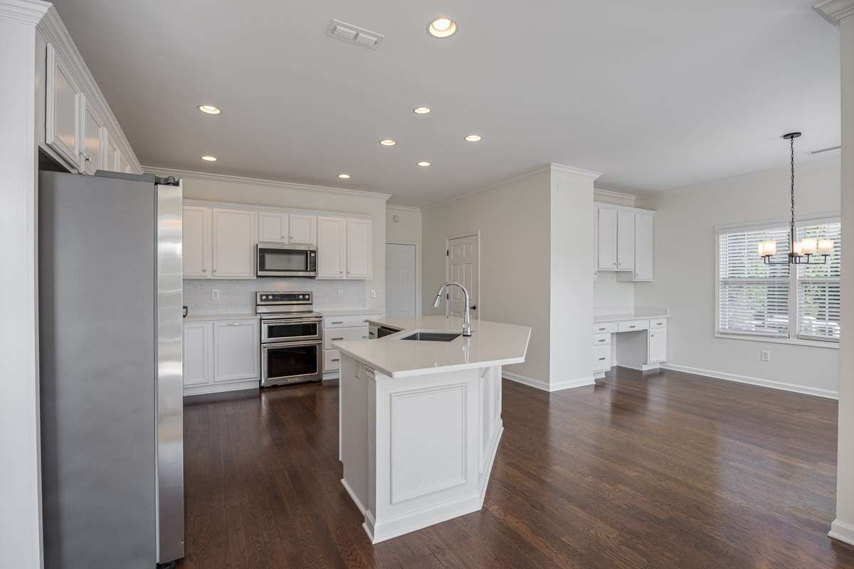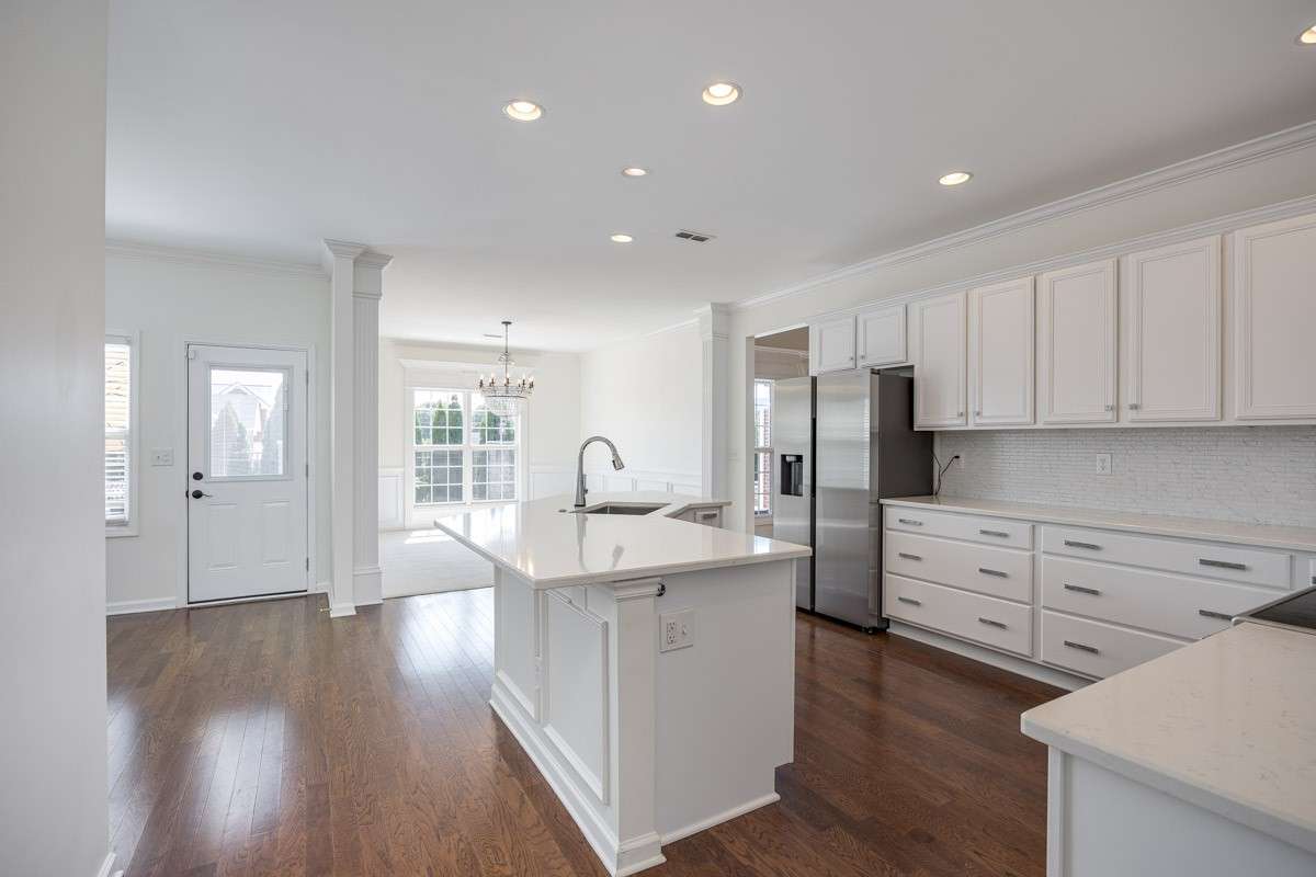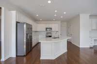 Step inside to discover gleaming hardwood floors, soaring ceilings and abundant natural light throughout. The thoughtfully designed kitchen forms the heart and soul of the living space featuring SS appliances and gleaming quartz counters that beautifully compliment the custom cabinetry. A walk- in pantry provides plenty of storage space, while the adjoining eat- in kitchen and dining room are perfect for family meals or entertaining guests.