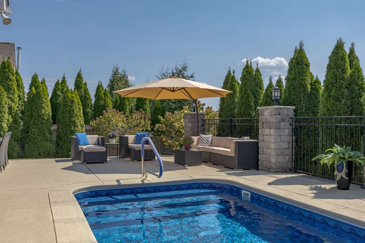 Outdoor living is effortless in the private backyard oasis that boasts of a saltwater pool with new liner, relaxing hot tub with waterfall and stamped concrete patio. Furnished with stylish outdoor rattan furniture and a new cantilever umbrella - all pool furniture and equipment to convey. With thoughtful updates throughout ( roof 2 years, HVAC 2019, new water heater, leaf guards) , this home is move- in ready and waiting for you to create lasting memories.