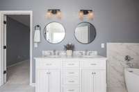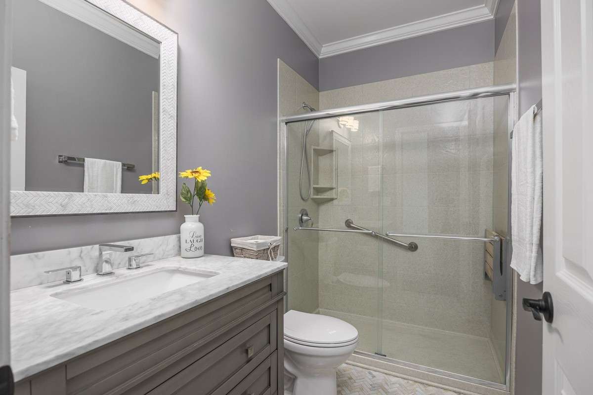 Relax in the cozy living area, where the striking floor to ceiling stone fireplace adds warmth and charm. The primary suite offers a private retreat with a luxurious en suite bathroom, complete with a soaking tub, separate oversized shower, double vanities and his and her walk- in closets.