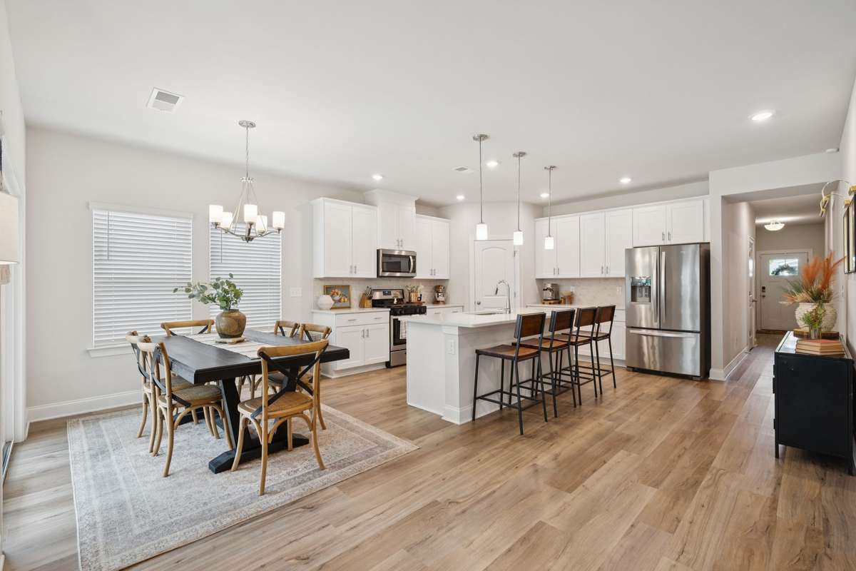 The open- concept design fills the home with natural light and provides seamless flow from the living area to the kitchen and dining spaces, making it perfect for both everyday comfort and entertaining. Outside, enjoy a fenced backyard ideal for gatherings, friends, kids, or pets. Whether hosting indoors or out, this home offers the ultimate setup for entertaining and relaxation. This home is a Must- See!
