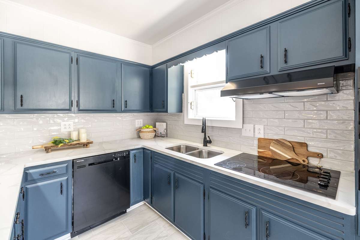 Bright and cheerful kitchen with painted cabinets and quartz countertops, offering a clean and timeless look