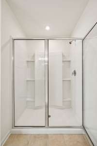 2nd Primary bathroom has double vanity, water closet, linen closet and a large walk in shower.