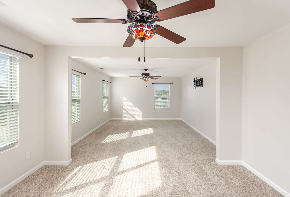 Upstairs, the oversized master suite includes a sitting area and plenty of space to