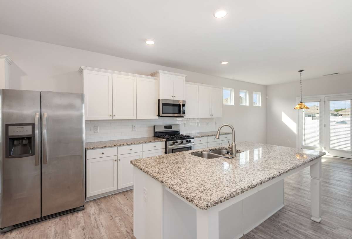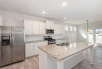 offers granite countertops, a large island, and stainless steel appliances—ideal for