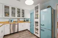 Set on a spacious . 49- acre corner lot, this newly updated 4BR/ 3BA home blends comfort and creativity. The uniquely retro, renovated kitchen features new cabinets, butcher block countertops, 2 super cool retro refrigerators, Bosch dishwasher, stove/ oven, deep double sink, and pantry. The eat- in kitchen flows seamlessly to a cozy den with wood- burning fireplace. Wood flooring and new tile throughout. Flexible first floor spaces include a living room with beautiful light and French doors currently used as an art studio and a dining room used as a music room. All baths are beautifully updated with pedestal sinks, brand- new tub, and shower. The 4th bedroom—now a laundry room convenient to bedrooms upstairs—can easily convert back. Step outside to enjoy the fenced backyard, a very private haven for play, gardening, or unwinding at the end of the day. The flower garden is a perfect oasis. With its thoughtful updates, versatile layout, and artistic spirit, this property invites you to imagine the life you’ll create here. Updates within the past 2 years include new roof, new air ducts, new water pipes, and whole house water filter. Quiet and peaceful cul- de- sac, convenient to parks—one block to the greenway and practically around the corner from the 600- acre Warner Park! Minutes to wonderful Bellevue shopping, dining, Downtown Nashville & more!