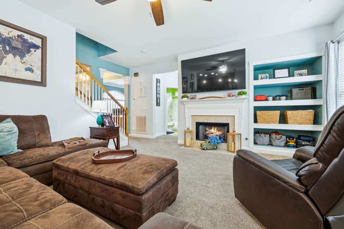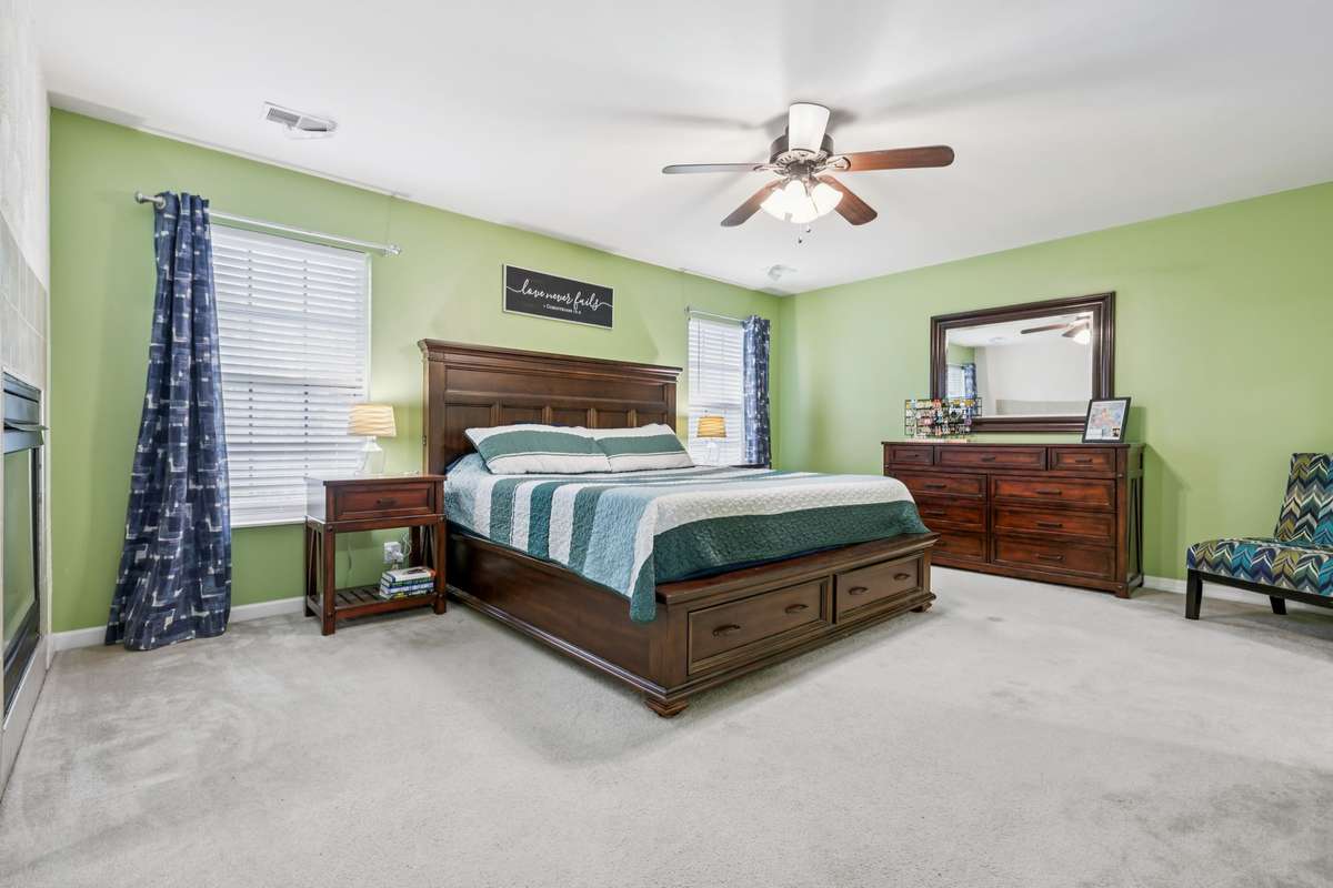 This community offers sidewalks throughout, along with outstanding amenities including a swimming pool, tennis courts, basketball courts, and parks. This spacious 3, 300 sq ft home features 4 bedrooms, 3 full baths, a formal dining room, dedicated office, cozy den with fireplace, laundry room, and a large recreation room. The expansive primary suite is truly a retreat, complete with its own fireplace, sitting area, oversized walk- in closet, and a luxurious ensuite bathroom. Additional highlights include a fully fenced backyard and a 2- car garage, offering both privacy and convenience.