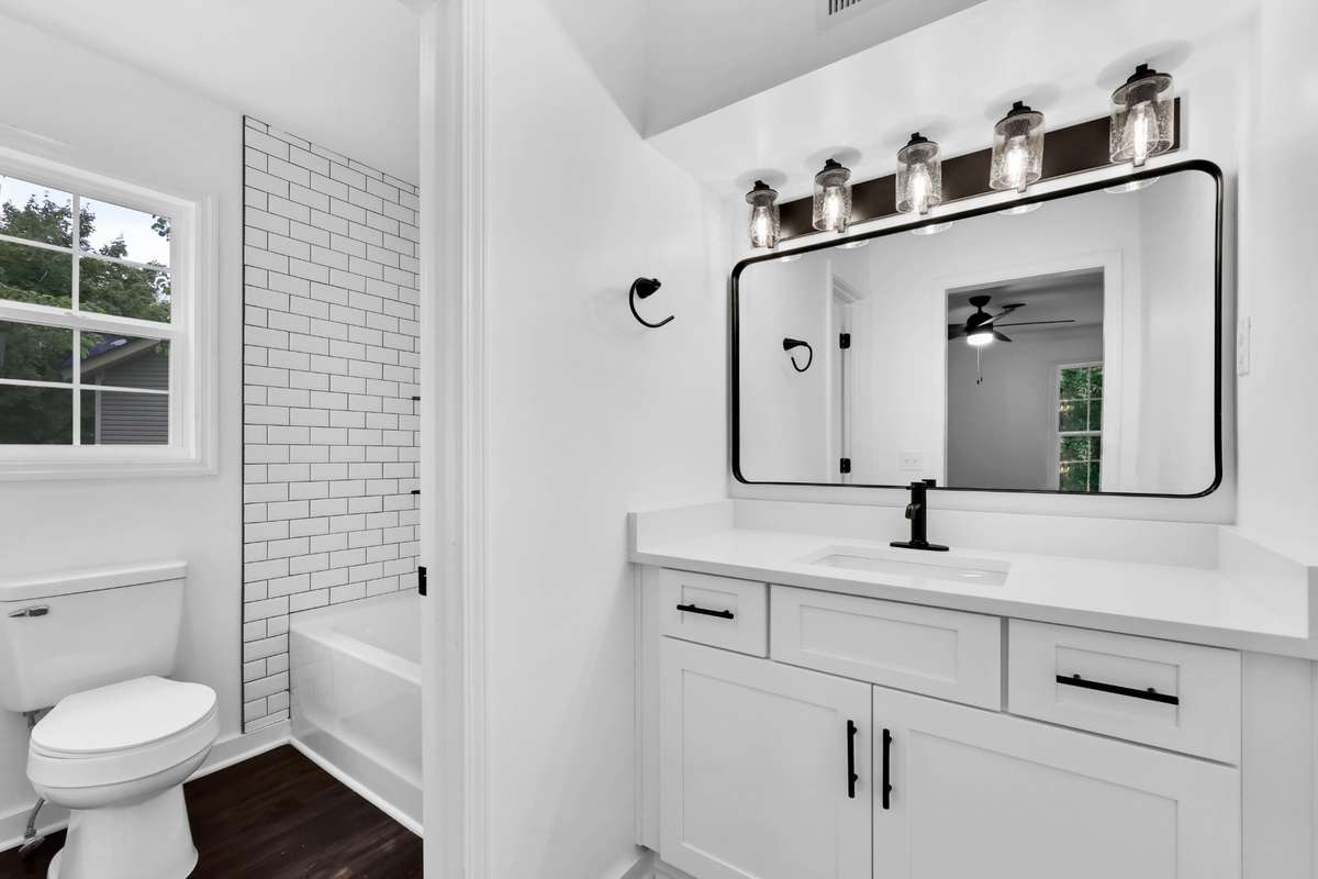 Hello Gorgeous! Completed renovated primary bath with quartz counters, tiled shower, & modern fixtures!