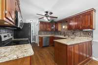 Spacious 4BR/ 3BA, 3, 259 sq ft home in Brook Hollow Subdivision, located on a quiet cul- de- sac. This 2- story home features two master suites with walk- in closets ( one on each level) , two living rooms, a bonus room, and a gas fireplace on the lower level. The kitchen boasts granite countertops, a pantry, eat- in area, and connects to a formal dining room. Additional highlights include an attached 2- car garage, laundry room, and a large back deck—perfect for entertaining. Ideal layout for multi- generational living.