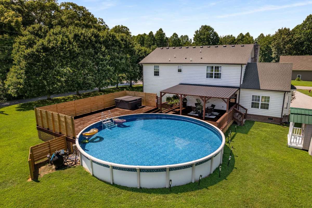 This beautiful home offers the perfect blend of comfort and entertainment with a large covered front porch, covered back porch, and a spacious private deck surrounding a 33’ pool and 6- person hot tub. The layout is ideal for gatherings, set in a quiet neighborhood just minutes from Center Hill Lake. Recent updates include fresh paint, new flooring, new duct work, modern light and plumbing fixtures, freshly stained decks, and two new sets of stairs on the front porch. Inside, you’ll find vaulted and trey ceilings, abundant windows for natural light, and an open floorplan with plenty of kitchen cabinets. Features include a wood- burning fireplace with gas available if desired, 2. 5 bathrooms with the option to easily convert to 3 full baths, and an oversized primary suite on the main level. A storage building conveys, and all kitchen appliances plus washer and dryer remain—making this move- in ready home a true find.