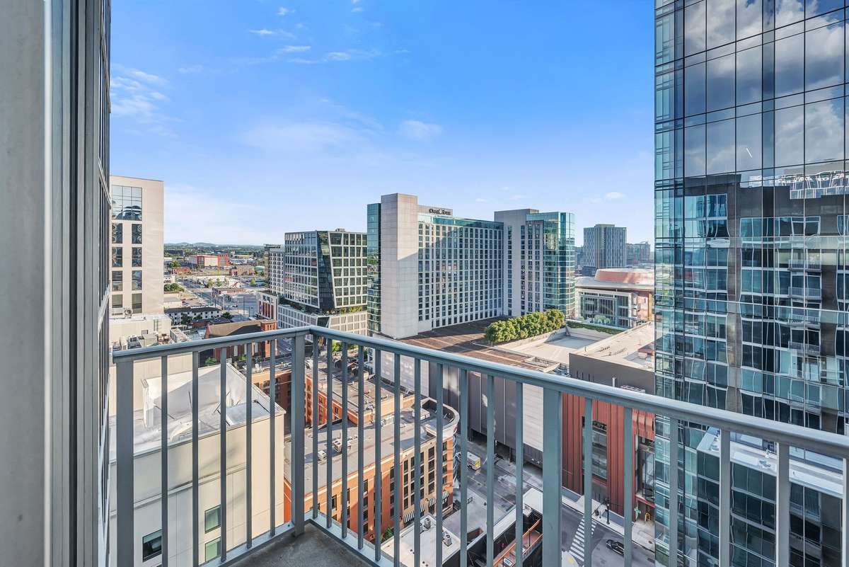HOA FEES PAID FOR THE FIRST YEAR!!! ! MOTIVATED SELLER!!! ! Downtown- chic and freshly refreshed! This 19th- floor condo brings a sleek, modern vibe with new designer light fixtures, an open floor plan, and rare extra storage. Floor- to- ceiling windows flood the space with natural light, while a private balcony captures panoramic views over Music City. The oversized bathroom feels luxe with double vanities and generous storage.