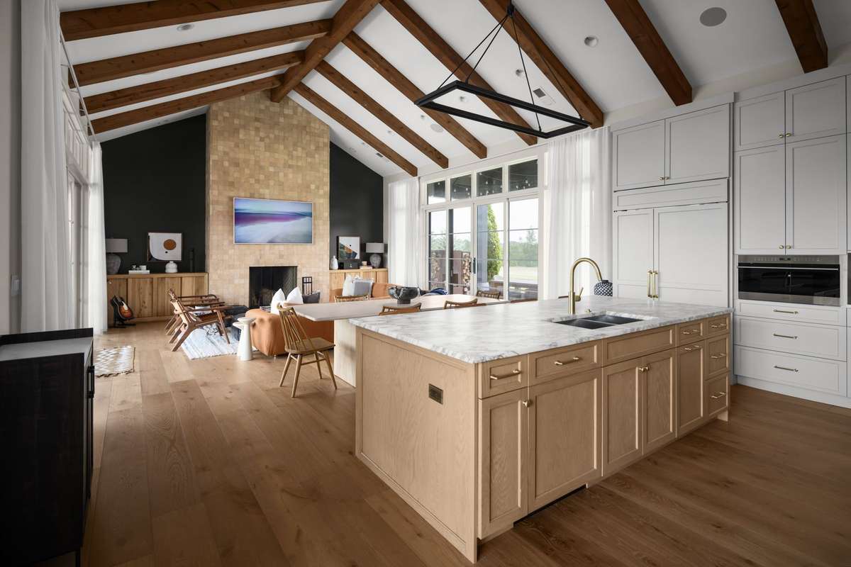 Inside, natural light floods through expansive windows, showcasing refined finishes and warm textures throughout. The open- concept layout connects the kitchen and living area, offering a seamless transition to the covered patio and outdoor living spaces. Whether you' re hosting guests or enjoying a quiet evening at home, every detail is designed for effortless comfort and connection.