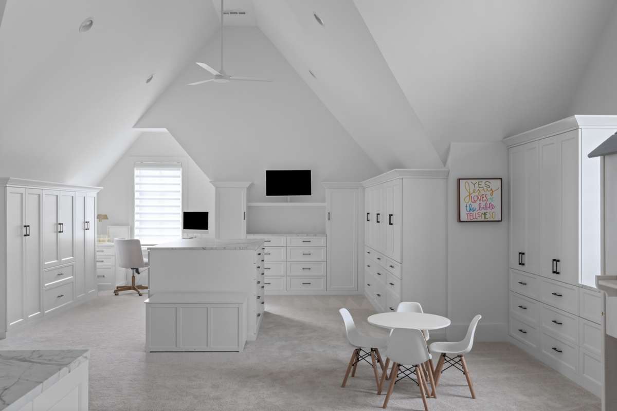 A massive second floor bonus room steals the show, offering space for crafts, a second office, a TV lounge, and a kids’ play area. . The home office exudes warmth with a wood- burning fireplace ( gas starter) creates a productive and inviting workspace.