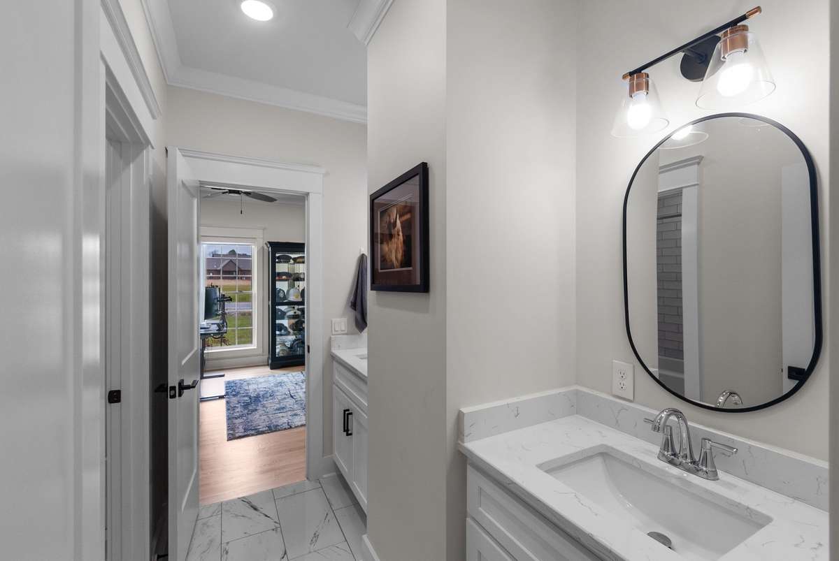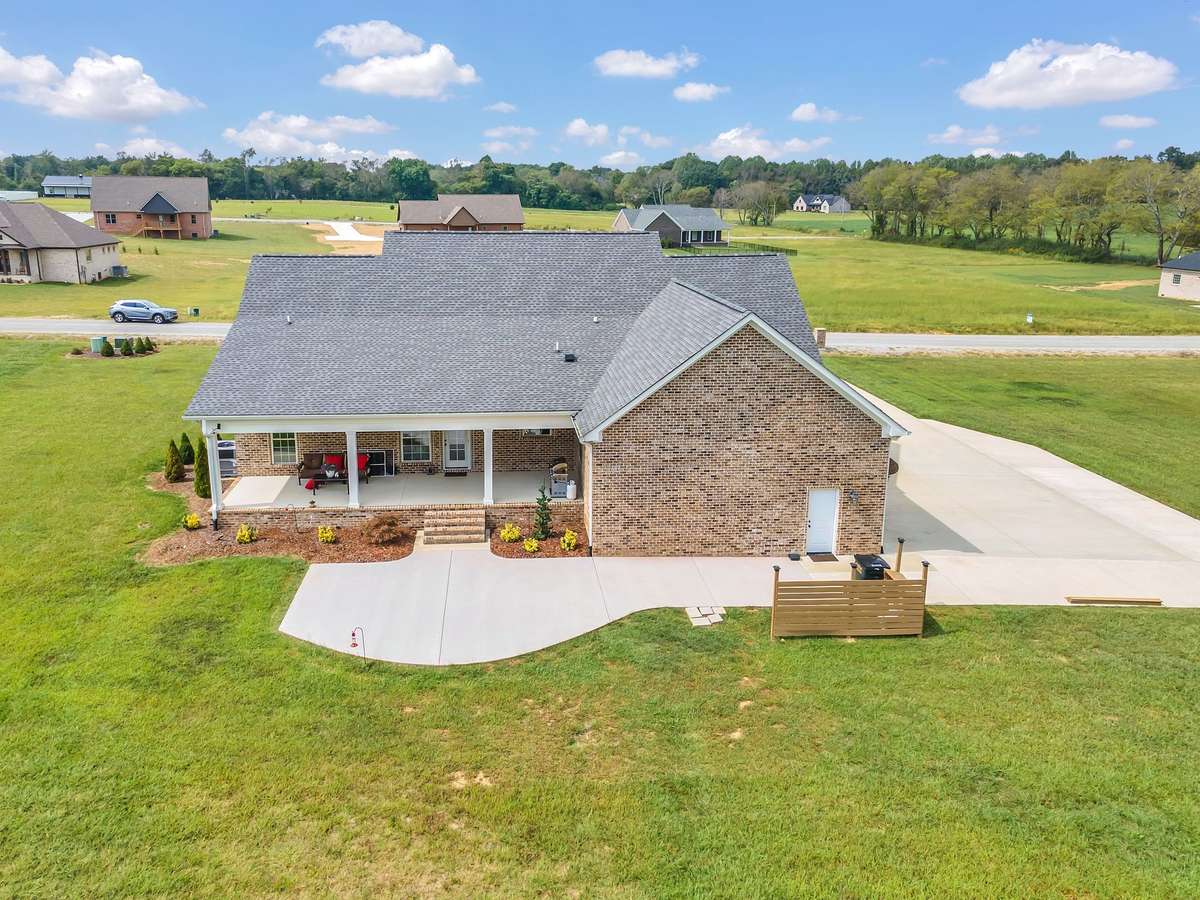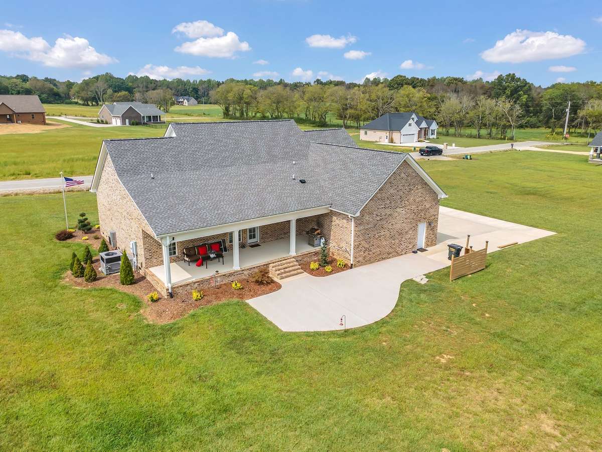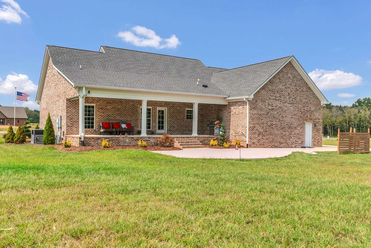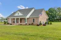 Discover elegance in this stunning 3- bed, 2- bath IMMACULATELY clean home in Leoma, TN, offering 2198 sf of refined living. Perfect for families or professionals, this home blends style and function. 9’ ceilings lend to the spacious, yet thoughtfully planned space. True hardwood floors and abundant recessed lighting bring this warm, neutral palette to life, creating a warm, elevated ambiance that will make you want to stay a while. Extensive trim work and moldings add timeless charm. Upgrades to door hardware and light switches further elevate the feel and function of this home, making it truly better than new. The gourmet kitchen boasts quartz counters, a designer tile backsplash, and premium fixtures. The master suite is a spa- like haven with an oversized glass shower, soaking tub, designer tile, and dual quartz vanities, plus custom cabinetry in the master closet and mudroom. The secondary bath features dual quartz vanities and a beautifully tiled shower for shared use. Outdoors, you’ll find a continuation of the thoughtfully designed features with the spacious rear porch offering a retractable patio screen door and sunshade. Home sits on a level, infinitely usable space which backs to trees and has the feel of a private retreat. Upscale landscaping, a French drain system, buried downspout extensions, and an encapsulated crawlspace ensure low- maintenance living. A tankless gas water heater and coated garage floor add modern efficiency. Homes of this caliber do not come along very often; you must see to appreciate the absolutely pristine condition. This property is located approximately. 75miles from Nashville, TN and 50 miles from Huntsville, AL. There is NO HOA with this property. Additional lots can be purchased with this sale.