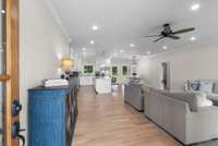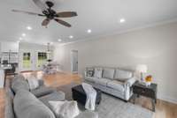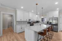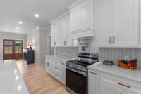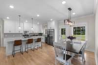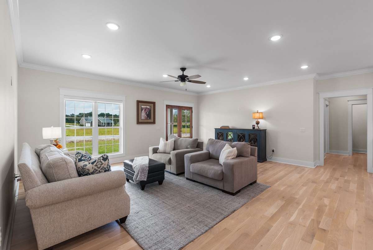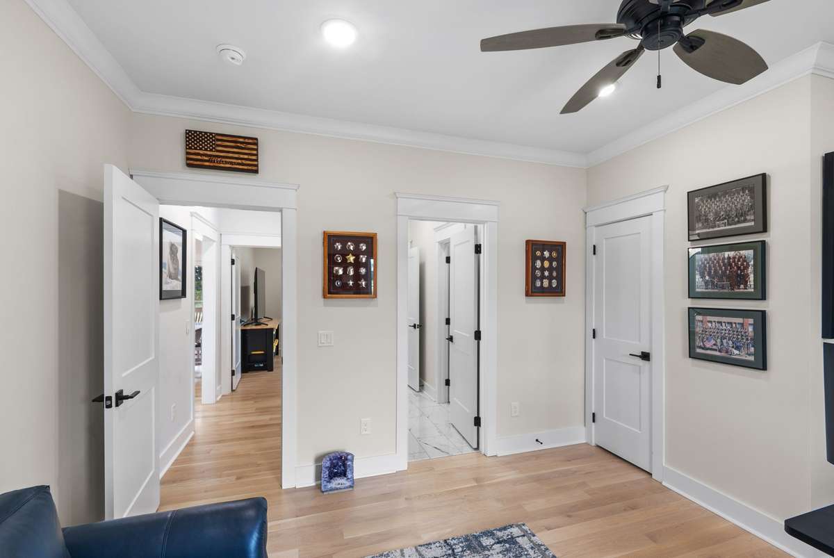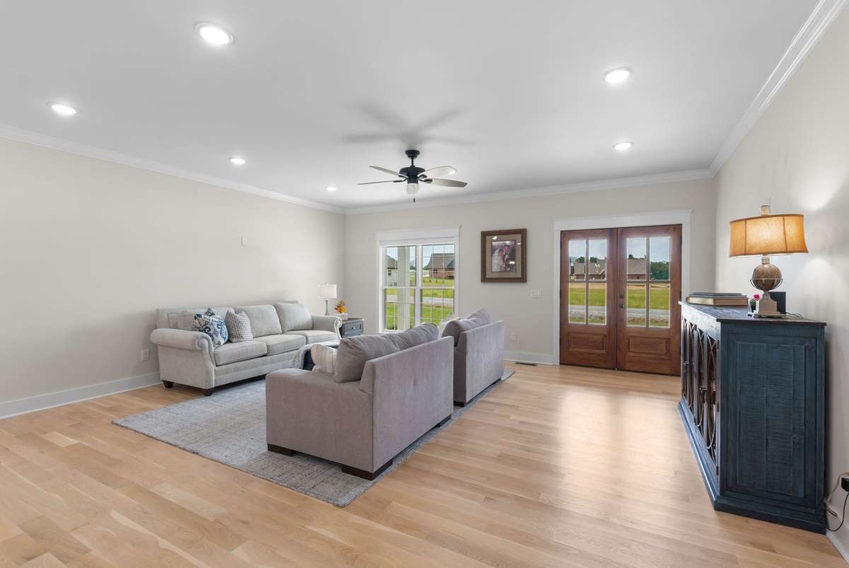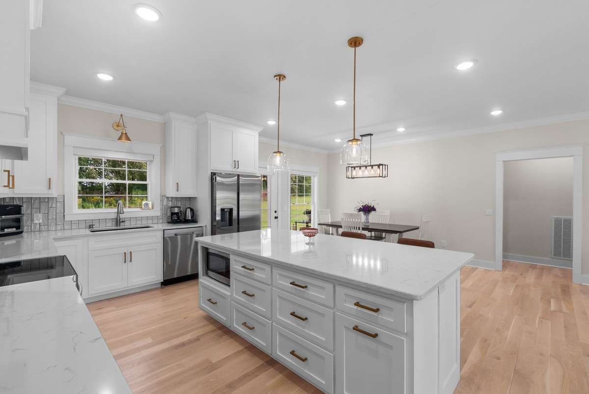 Discover elegance in this stunning 3- bed, 2- bath IMMACULATELY clean home in Leoma, TN, offering 2198 sf of refined living. Perfect for families or professionals, this home blends style and function. 9’ ceilings lend to the spacious, yet thoughtfully planned space. True hardwood floors and abundant recessed lighting bring this warm, neutral palette to life, creating a warm, elevated ambiance that will make you want to stay a while. Extensive trim work and moldings add timeless charm. Upgrades to door hardware and light switches further elevate the feel and function of this home, making it truly better than new. The gourmet kitchen boasts quartz counters, a designer tile backsplash, and premium fixtures. The master suite is a spa- like haven with an oversized glass shower, soaking tub, designer tile, and dual quartz vanities, plus custom cabinetry in the master closet and mudroom. The secondary bath features dual quartz vanities and a beautifully tiled shower for shared use. Outdoors, you’ll find a continuation of the thoughtfully designed features with the spacious rear porch offering a retractable patio screen door and sunshade. Home sits on a level, infinitely usable space which backs to trees and has the feel of a private retreat. Upscale landscaping, a French drain system, buried downspout extensions, and an encapsulated crawlspace ensure low- maintenance living. A tankless gas water heater and coated garage floor add modern efficiency. Homes of this caliber do not come along very often; you must see to appreciate the absolutely pristine condition. This property is located approximately. 75miles from Nashville, TN and 50 miles from Huntsville, AL. There is NO HOA with this property. Additional lots can be purchased with this sale.