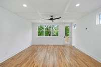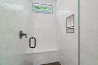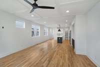 This exceptional residence boasts an open floor plan, enhanced by exquisite oak wood floors throughout, high ceilings, and soft- close cabinetry. The kitchen features elegant quartz countertops, SS appliances including a 36 inch wide Freestanding Induction Range with LED backlit knobs, and designer finishes throughout the home. The expansive primary bedroom offers a serene, spa- like bathroom, while each of the additional bedrooms includes its own bath and walk- in closet providing comfort and privacy for guests or family members.