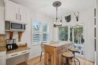 From the moment you arrive, the curb appeal stands out. Custom cedar shutters, beautifully curated landscaping offering both charm and privacy, and an irrigation system ( on its own dedicated water line) make outdoor upkeep effortless and cost- efficient. Inside, classic elegance welcomes you with hardwood floors, plantation shutters, and handcrafted barn doors, all complemented by modern lighting, updated fixtures, and refined touches throughout.
