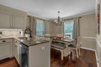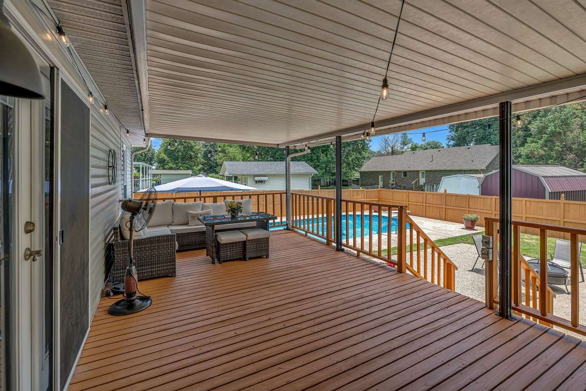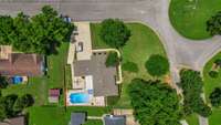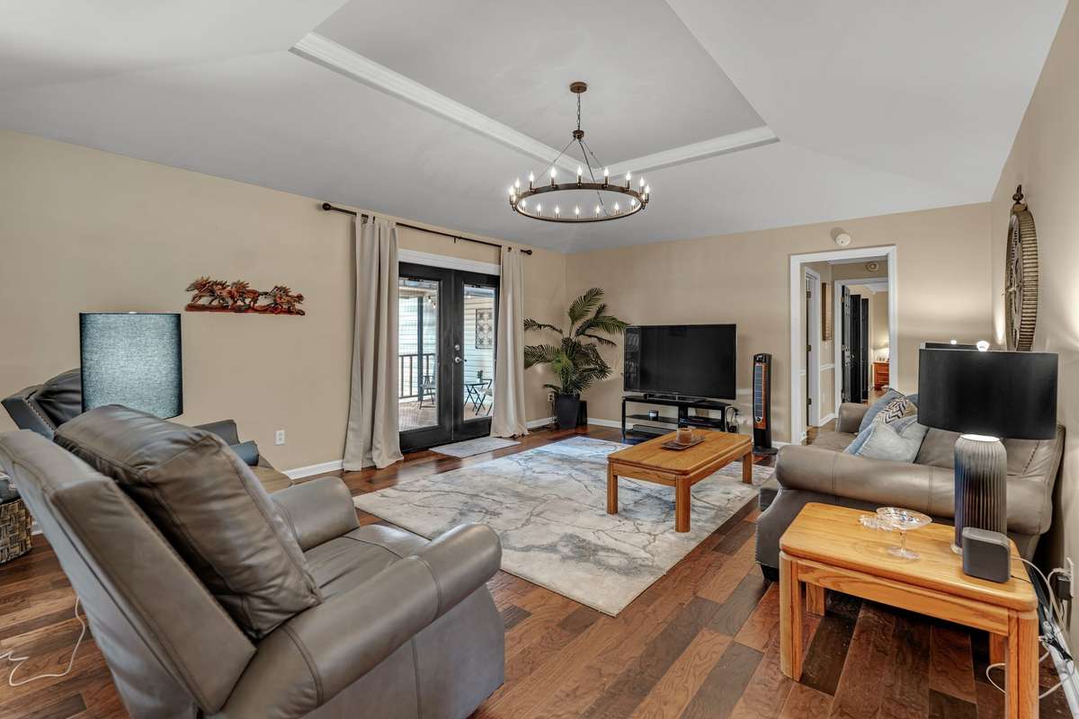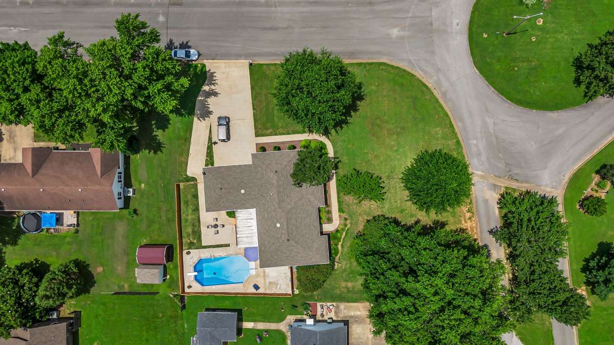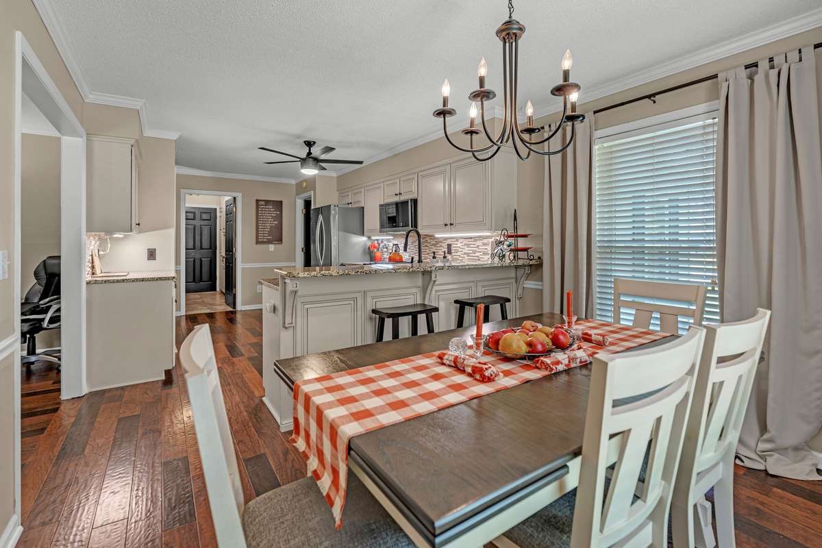 First floor living, move- in ready home on a private, flat corner lot with an in- ground pool—and no HOA! Step inside to find engineered hardwood floors throughout and an open- concept kitchen featuring new stainless steel LG appliances, including a gas range with a built- in air fryer oven. A light- filled eat- in area framed by floor- to- ceiling windows is perfect for everyday meals, while the separate formal dining room offers flexibility as a home office or additional living space. The spacious primary suite offers double vanities, a large whirlpool tub, a water closet, a storage closet, and a walk- in closet. The inviting family room, accented with a tray ceiling, flows seamlessly to the backyard through double glass doors, offering views of the pool. Outdoor living is elevated with a 22x12 covered deck overlooking the pool—ideal for morning coffee, evening dinners, or hosting friends. Enjoy the convenience of a gas grill connected to the home’s gas line, or gather around the fire pit for cozy evenings.