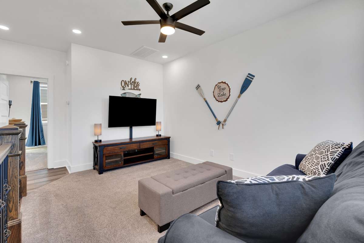 Discover refined lake living in this exquisite, gated community, where peace and luxury come together. Selling Fully Furnished! ! Residents here enjoy an impressive list of amenities, including a full- service marina, clubhouse, and several pools. Low maintenance with a HOA that takes care of your lawn and all amenities. This stunning home is crafted with timeless detail featuring both an indoor and outdoor stacked stone fireplace, creating warm and inviting spaces year- around. The open concept design is enhanced by rich wood beams, soaring ceilings, and natural light perfect for entertaining or quiet evenings at home. Home is being sold furnished. So, walk right in and start living or use as an income producing Airbnb. Master is on the main level and is complete with a very spacious spa like en- suite that feels like a private retreat. Every detail in this home is designed with elegance and functionality in mind, making this home the perfect balance of luxury and relaxation. Make 65 Pontoon Plc. your new address and start enjoying the lake from day one! ! The garage floor and back patio are complete with epoxy floors.