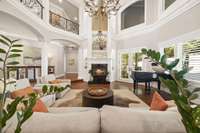 The Living Room dazzles with soaring ceilings, a cozy fireplace, retractable chandelier and refinished hardwoods.