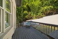Relax on this screened-in private balcony looking over the patio and surrounded by lush greenery.
