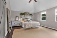 The layout is thoughtfully designed with the primary suite tucked away on one side of the home for maximum privacy. This spacious retreat features vaulted ceilings, an abundance of natural light, his- and- hers closets, spacious bathroom with double vanity and a stunning walk- in shower. The secondary bathroom has also been beautifully updated, adding to the home’s move- in- ready appeal. On the ground level, you’ll find a large bonus rec room — perfect for a playroom, home office, gym, or second living space.