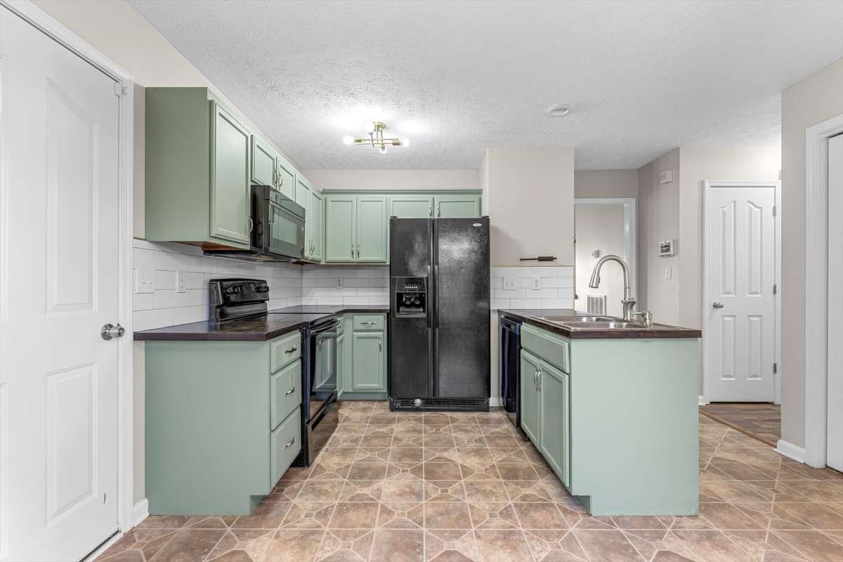 Inside, you’ll love the LVP flooring throughout ( yes, no carpet to worry about) , updated light fixtures, and a sunny bay window that brightens the living area. The kitchen features stylish sage green cabinets, sleek black appliances, and a subway tile backsplash, modern, fresh, and ready for your favorite recipes. Enjoy the added bonus of an included washer and dryer for your convenience.