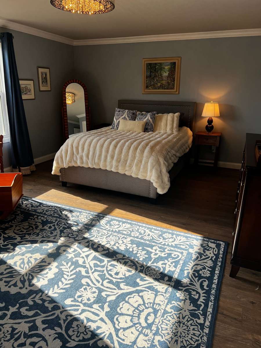 Lovely 3 bedroom 3 bath home, Bosch 800 series appliances, double oven, butler' s pantry with wine fridge, large pantry, unique lighting fixtures, large patio with natural gas fire pit, all bathrooms full surround tile bath/ showers, extended attic space, lawn and front landscaping maintained by HOA, large bonus room and large guest suite upstairs.