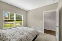 Primary bedroom has large walk in closet at the back of the home