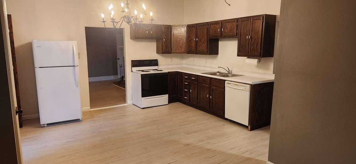 Recent interior remodel on this charming turn of the century home. Tall ceilings and spacious rooms. All new paint, floors have been refurbished or replaced ( original oak flooring in the 2 front rooms) , new light fixtures. Replaced in last 10 years - metal roof, copper plumbing, wiring as needed, HVAC. New or near new - kitchen countertop, some water fixtures in both bathrooms. Older wood stove insert but gas line is beside fireplace. Attic has drop down door access and plywood flooring for storage. Large Outbuilding ( 12x20) with concrete floor behind home. All appliances plus Washer & Dryer stays.