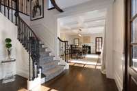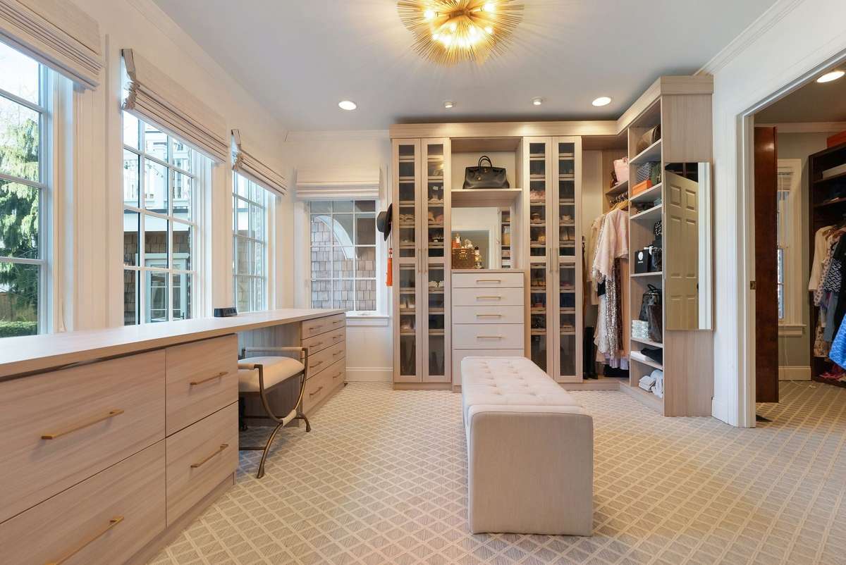 And don’t miss the standout primary suite. It' s not just a bedroom, it’s a personal retreat. Featuring a custom glam suite with built- in shelving, recessed lighting, a dedicated vanity, and even a workspace.