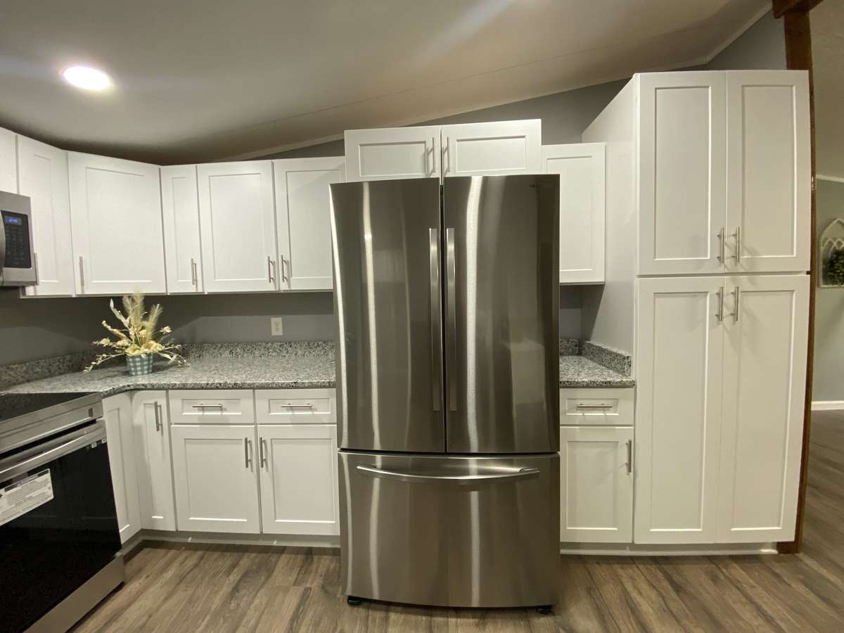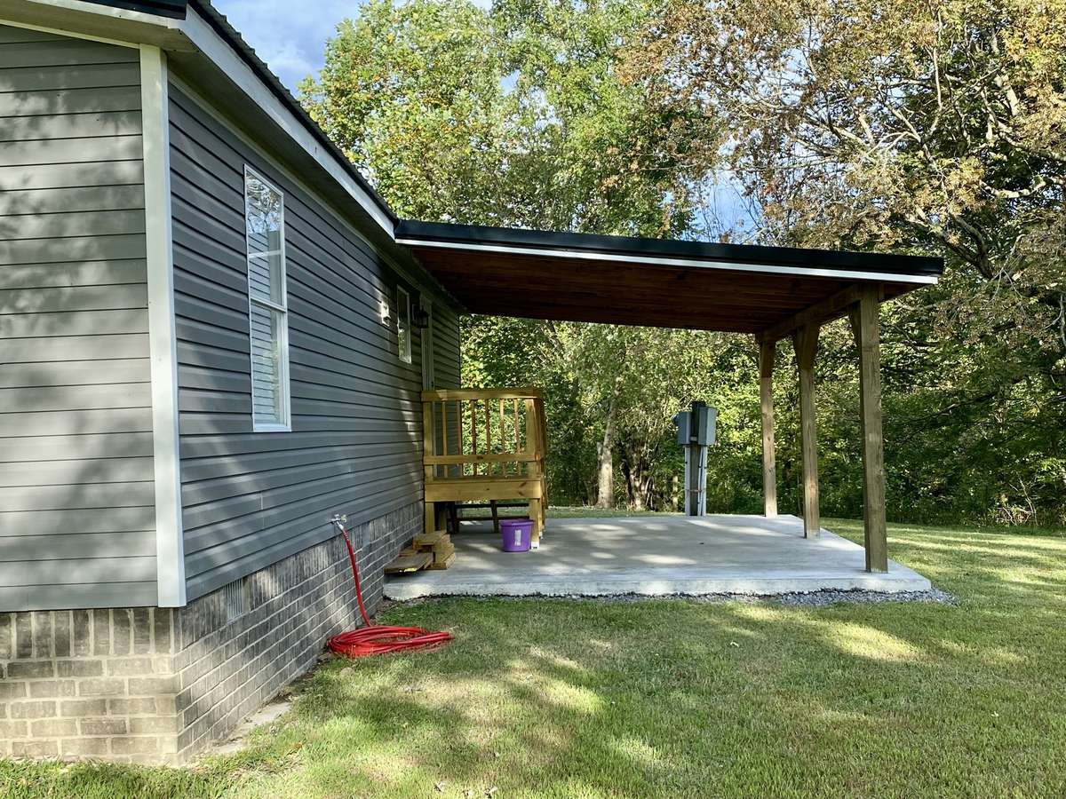 Beautifully remodeled manufactured home with a permanent foundation. Includes 5 acres with tons of potential. New metal roof, new siding. Private drive. Fully remodeled kitchen with beautiful white cabinets, granite counter tops, new stainless steel appliances and a dining table included. Two full bathrooms with updated cabinetry. Master bathroom with walk in closet. New carpet and laminate throughout the entire home. Covered front and back porches. Detached concrete patio and fire pit area perfect for outdoor gatherings! All detached items present are included in sale of property. Home is on city water, but well water is present on property.