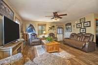 Pretty and cozy 2 bedroom , 2 bath cabin with a bonus room in Spruce Creek Acres Community. This is a horse property with