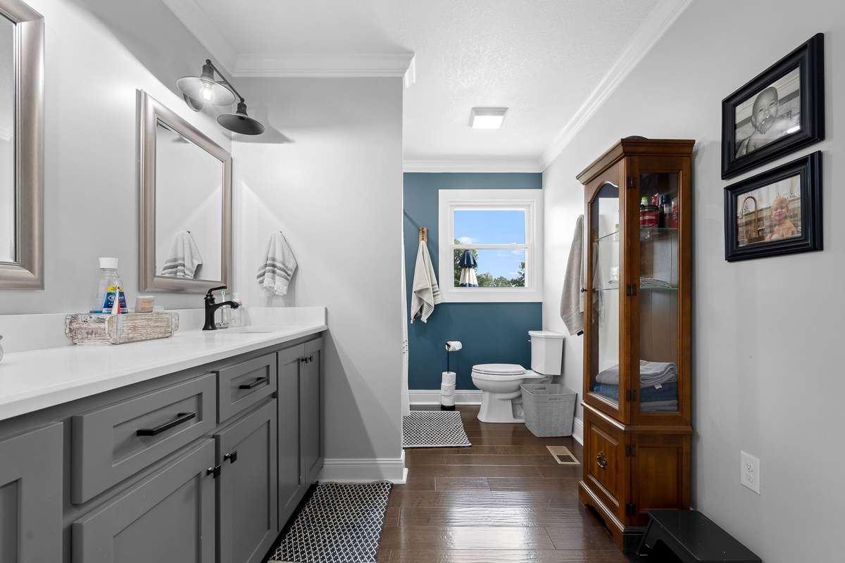 Inside, you’ll love the granite and quartz countertops, hardwood floors, and a cozy gas fireplace. The roof is less than one year old, giving you peace of mind for years to come. The home is on county water, with an additional well on the property.