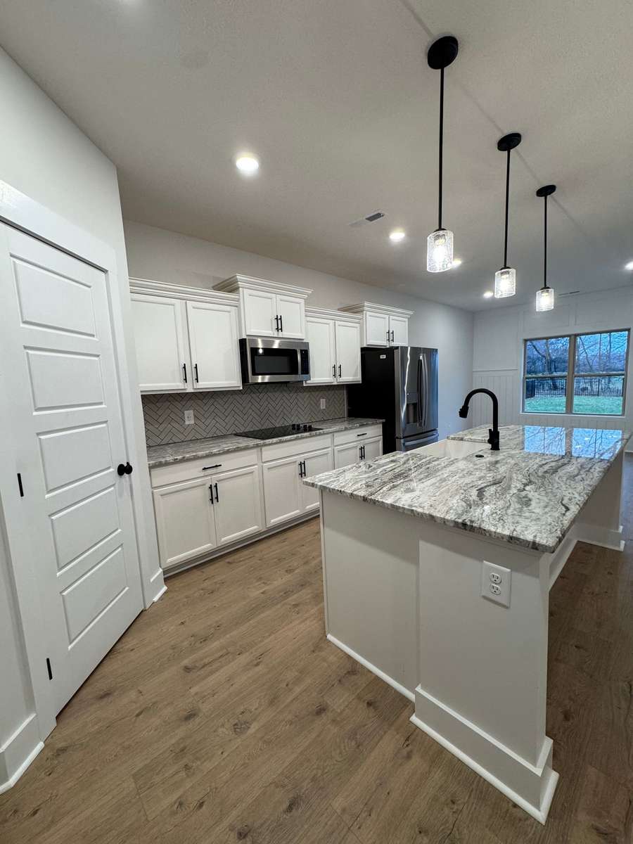 EVERYTHING YOU NEED IS INCLUDED! Backyard Fence, Window Blinds, French Door Refrigerator, Washer + Dryer, Solid Local Builder’s Warranty, plus Seller- Paid Costs and a Fixed Rate Buy- Down ( rates in the 5% range for qualified buyers using the builder’s preferred lender) . As a proud second- generation builder rooted in Clarksville, Grant Construction’s mission goes beyond building homes—they’re building community. With a strong commitment to supporting the military, including a veteran on staff, they proudly serve those who serve and stand behind every project with a reliable warranty you can trust. Welcome to a remarkable property with NO REAR NEIGHBORS! This stunning home features four spacious bedrooms, including a luxurious main- level primary suite designed for relaxation. The open- concept living and kitchen area is the heart of the home, highlighted by a shiplap fireplace with a cozy LED firescape—perfect for gatherings. The kitchen offers a functional open layout ideal for entertaining or casual meals. Need office space or a formal dining area? The versatile front room off the foyer adapts to your lifestyle. Your main- level primary suite provides a true retreat with a large walk- in dressing room, a fully tiled shower, and a separate soaking tub. Upstairs, three additional bedrooms surround a flexible recreation room—ideal for a media area, gym, game room, or guest space. A spacious three- car garage offers room for vehicles, tools, hobbies, and storage. Step outside to your backyard sanctuary, where peaceful, tree- lined views create an ideal setting for morning coffee, quiet evenings, or weekend relaxation.