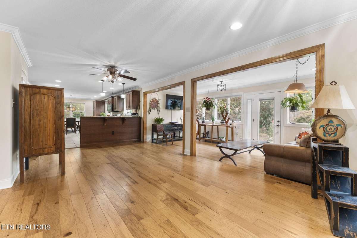 Spacious, Updated & Perfectly Located! This beautifully renovated 2- story home offers 3, 074 sq ft of flexible living space on a landscaped corner lot in sought- after Twin Springs. The main level is made for gathering- featuring a formal dining room, chef' s kitchen with granite countertops, stainless steel appliances, and custom cabinetry, plus a sun- filled living room, cozy sunroom, and expansive rec room. Upstairs, the oversized primary suite boasts two walk- in closets and a private bath, while two additional bedrooms share a stylishly updated hall bath. Thoughtful updates ( 2013- 2015) include hardwood floors, energy- efficient windows, upgraded lighting, gutter guards, and the addition of a 30x16 workshop- perfect for hobbies, projects, or extra storage. Enjoy peaceful mornings on the covered front porch overlooking lush garden beds or unwind in the sunroom with serene backyard and walking trail views. The oversized 2- car garage offers plenty of space plus the attached workshop. Just minutes from I- 40/ I- 75, Turkey Creek shopping and dining, and major medical centers- this home combines comfort, function, and an unbeatable location.
